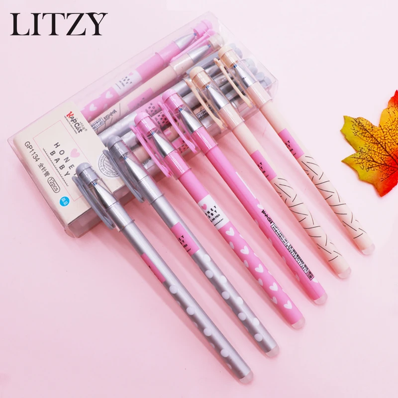 6 шт./компл. 0,38 мм стираемую ручка Сердце Точки синий/черные чернила магия Шариковая ручка для школы письменная работа в офисе поставить Kawaii ...