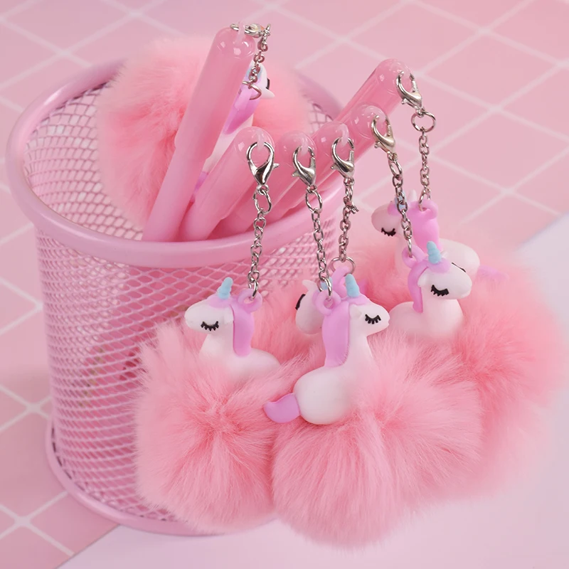 Сладкий мультфильм Розовый Единорог помпоном гелевая ручка для письма школьные принадлежности ручки kawaii staitonery paperlaria школьные принадлежно...