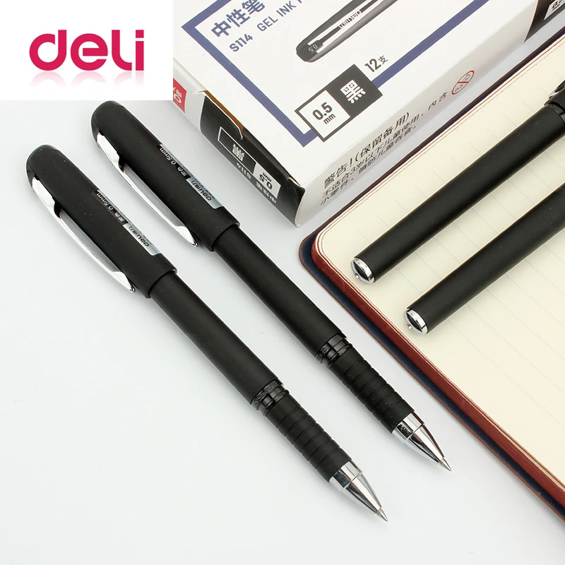 Гелевые ручки, Дели, 1 шт., пластиковая ручка, 0,5 мм, офисные черные чернила, заправки, оптовая продажа, гелевая ручка, роликовая шариковая ручка, Резиновая, S114, канцелярские принадлежности