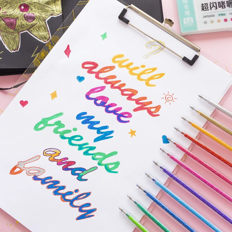 12 шт. Блестящий цветной маркер, фломастер, Шариковая 1,0 мм, металлические цвета, альбом для рисования, художественная школа A6894