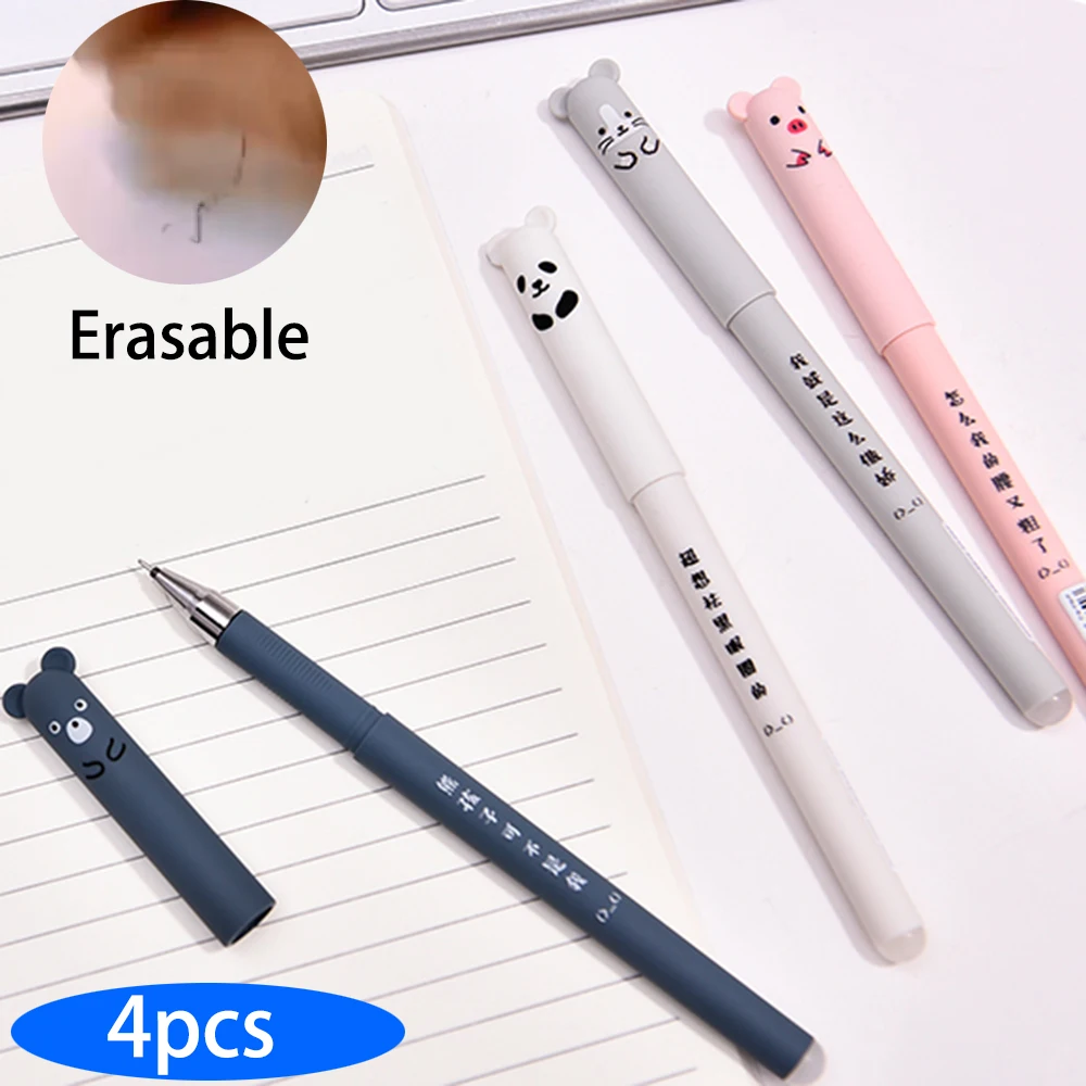 4 шт./лот, гелевая ручка с милым мультяшным медведем, пандой, розовой мышкой, стираемой синими чернилами, школьные, офисные, Подарочные канцел...
