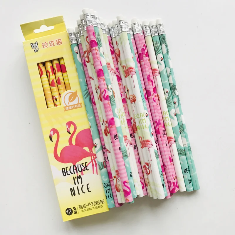 4X милый Фламинго стандартная древесина карандаш с ластиком с длинной ручкой инструмент для письма школьные офисные поставки студенческие ...