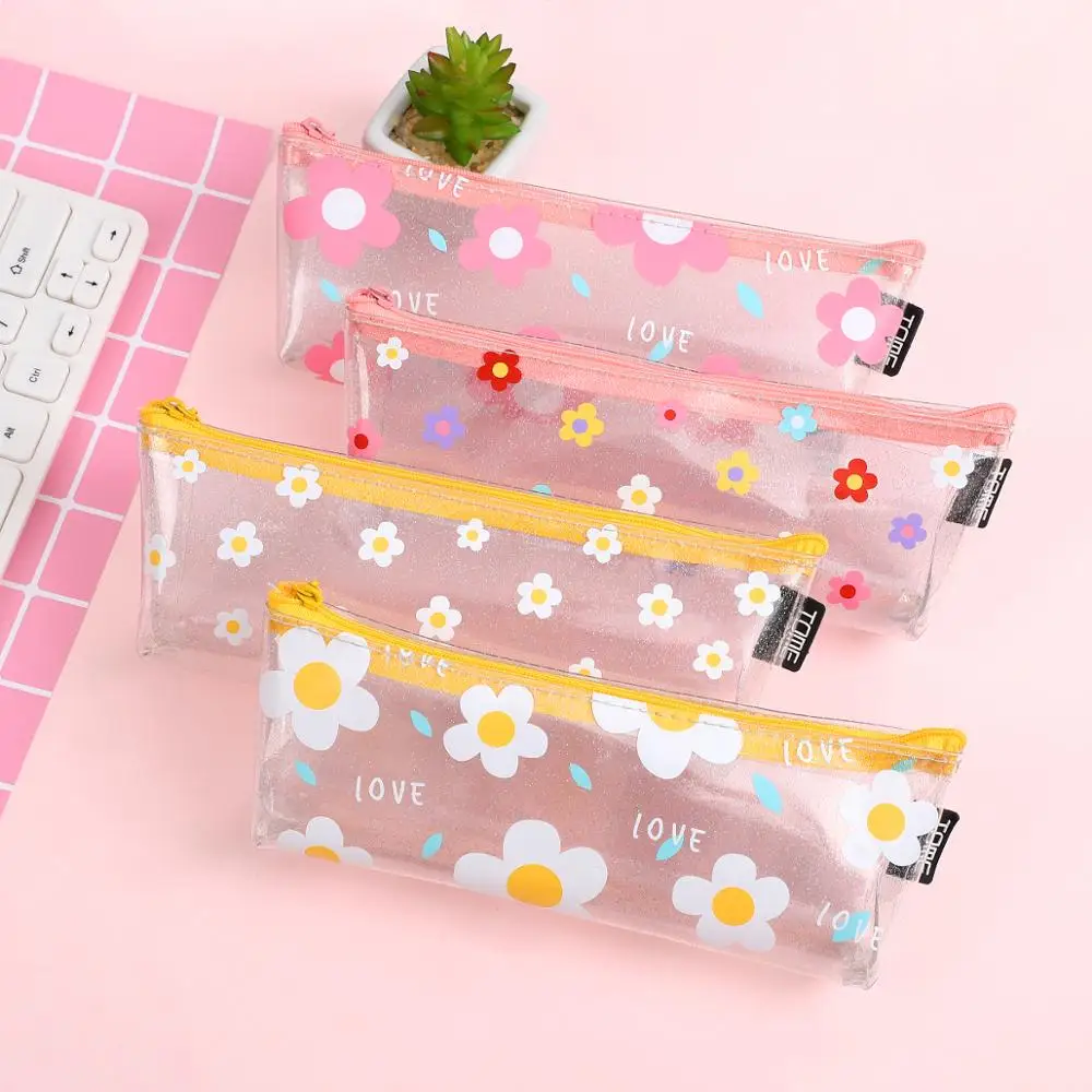 JIANWU 1 шт. Kawaii flower пенал треугольные прозрачные ПВХ высокой емкости симпатичный пенал школьный расходные материалы