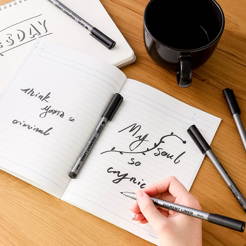1 шт., мягкая ручка для рисования, черный цвет, пигментная подводка, водостойкий художественный маркер для рисования, надпись, каллиграфия, сделай сам, школьная 6986