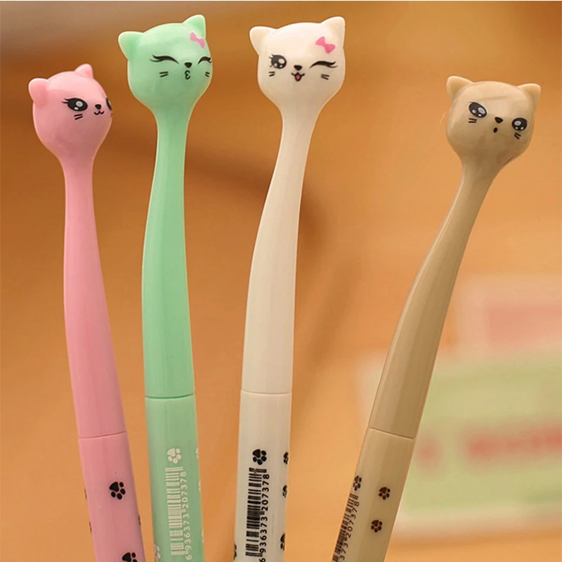 0,5 мм 4 шт./лот милый мультфильм черные чернила гелевая ручка Kawaii пластик Cat ручки канцелярские для студентов письма Офис Школьные принадлежн...