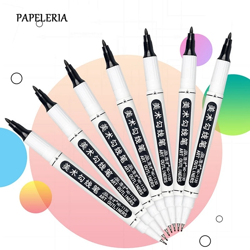5 шт./компл. Перманентный маркер с двумя наконечниками, тонкая водостойкая чернильная ручка с тонким наконечником, черные чернила 0,5 мм-1 мм, тонкая ручка для рисования