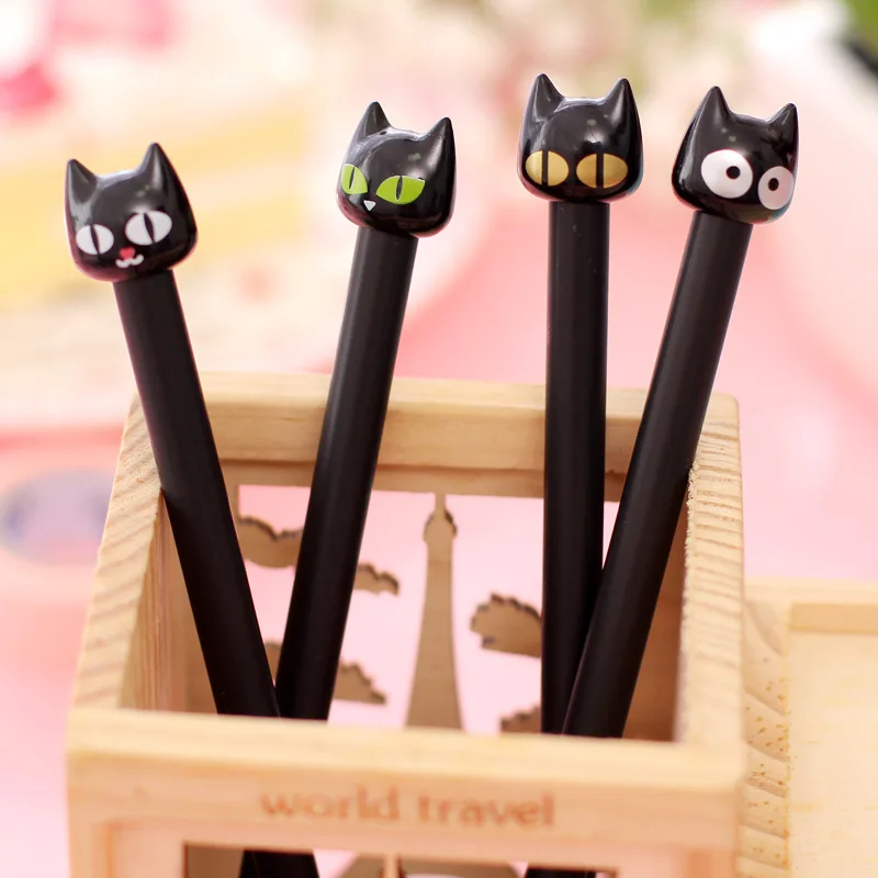 4 шт./лот Новинка Черный милый кот голова гелевые чернила Ручка Рекламные канцелярские принадлежности для студентов Школа Офис Письменные р...