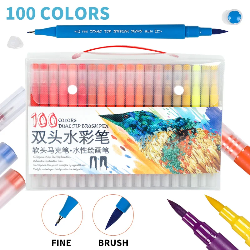 100 шт цвета двойной кончик кисти ручная роспись Маркер ручки художественные акварельные Fineliner Рисование Канцтовары для раскрашивания Манга