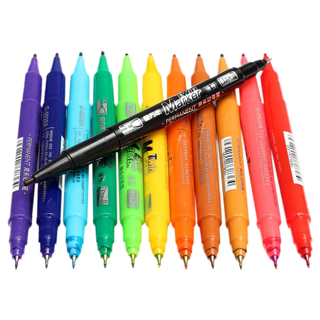 12 цветов Набор микрон ультра тонкий двойной Перманентный маркер ручка водонепроницаемый