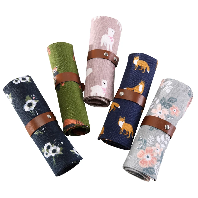 Kawaii лиса енота Альпака животных цветы холст ролл сумка для карандашей Канцелярия хранения Организатор сумка Школа Офис питания Эсколар