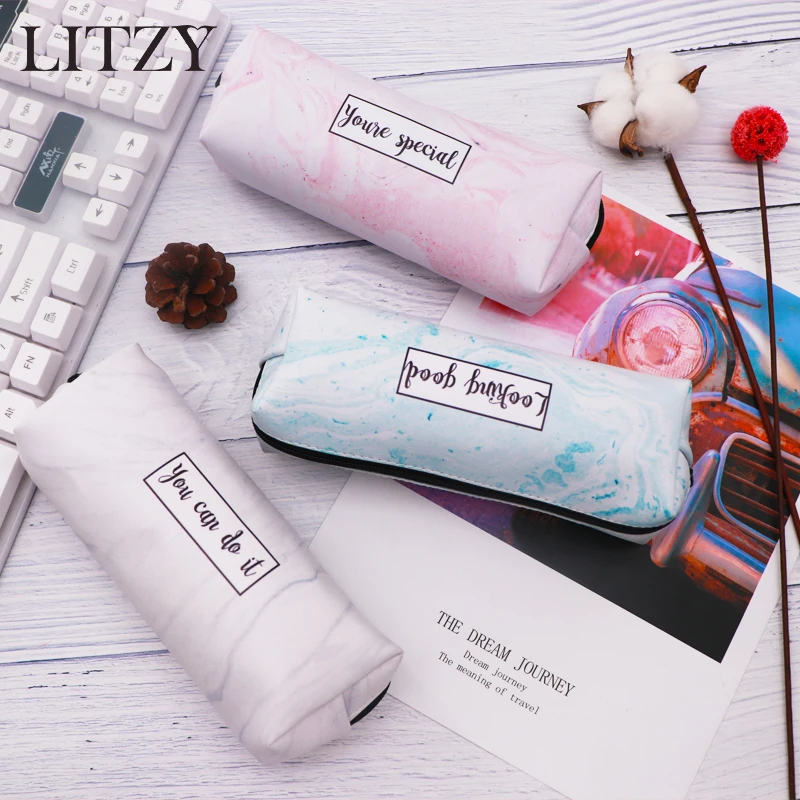 Мрамор пенал; Забавный школьные пеналы для мальчиков и девочек Kawaii кожа большая ручка мешок PencilCase сумка школьные канцелярские