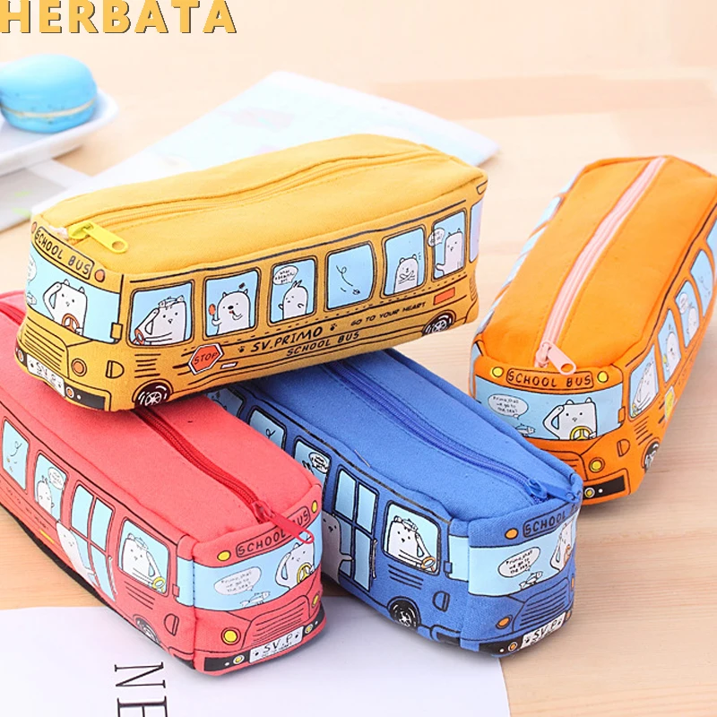 Корейские канцелярские товары для творчества студентов маленькие животные автобус ручка сумка автобус пенал для мужчин и женщин пенал из т...