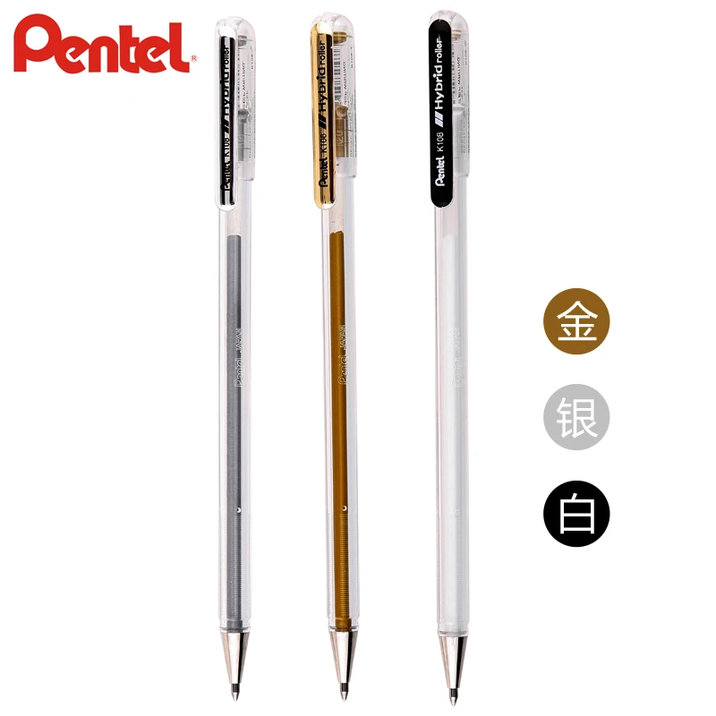 1 шт., гибридный роллер K108, гелевая ручка, ручка для рисования, вздох, Ручка-роллер с ментальным наконечником, 0,8 мм, золото/серебро/белый цвета