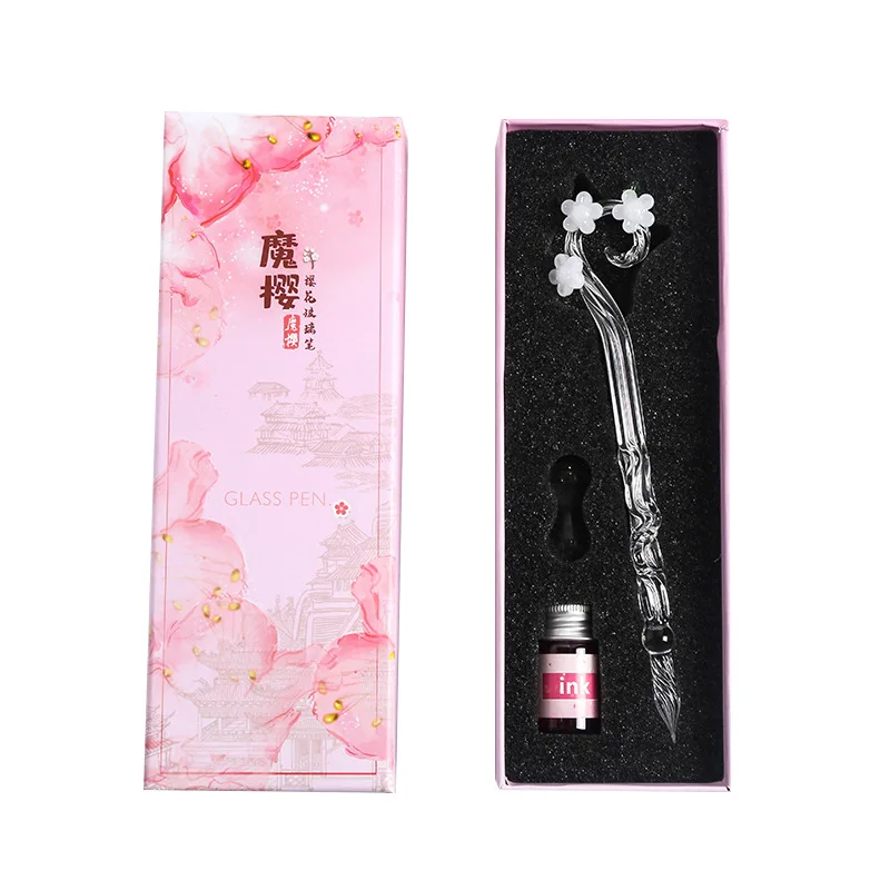 1 набор волшебная Цветочная Стеклянная Ручка Студенческая подарочная ручка кристалл Dip авторучка набор канцелярских принадлежностей