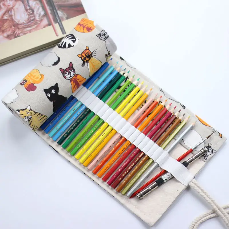 Национальный холст кошка школьный пенал 36/48/72 Отверстия Roll Up карандаш сумка Портативный школьный пенал поставки материал Эсколар