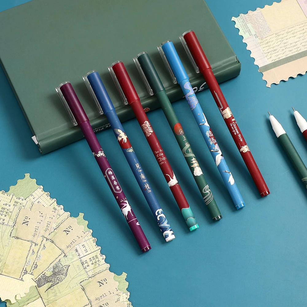 1 шт., 0,5 мм, китайский журавль, стиль ретро, гелевая ручка, гладкая, для письма, нейтральная ручка, kawaii bullet journal pen, милые ручки, школьные принадлежности