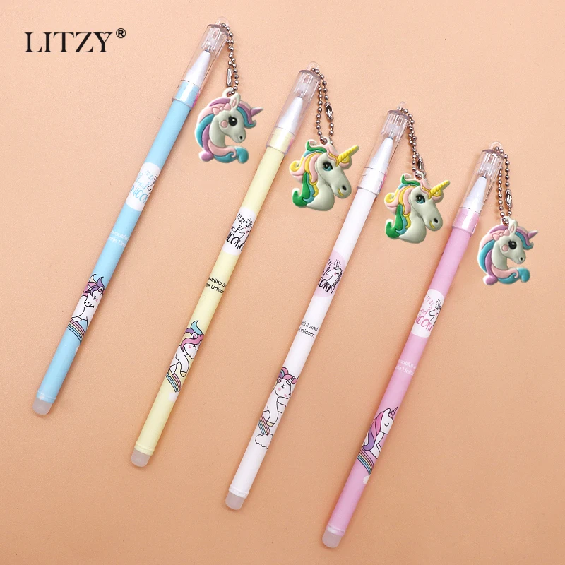 4 шт./партия подвеска «Единорог» стирающаяся ручка с пастой набор стираемая моющаяся ручка стираемая Волшебная гелевая ручки для школы канц...