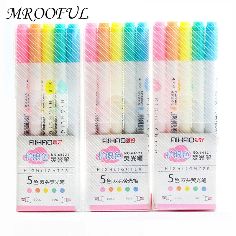 5 шт. Mildliner Маркер Набор ручек Kawaii 5 цветов двуглавый флуоресцентный маркер ручки японские канцелярские принадлежности Школьные офисные при...