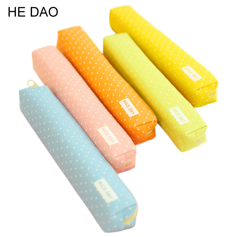 Милый чехол-карандаш карамельного цвета в горошек, тканевая сумка для ручек, сумка для канцелярских принадлежностей для девочек, подарок для офиса, школьные принадлежности, Escolar Canetas