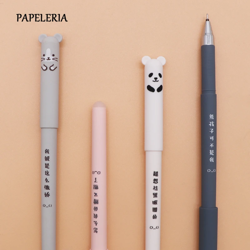 4 шт мультфильм Животные стираемая ручка 0,35 мм Милая панда кошка Волшебные кавайные Ручки гелевые ручки для школы письма канцелярские прина...