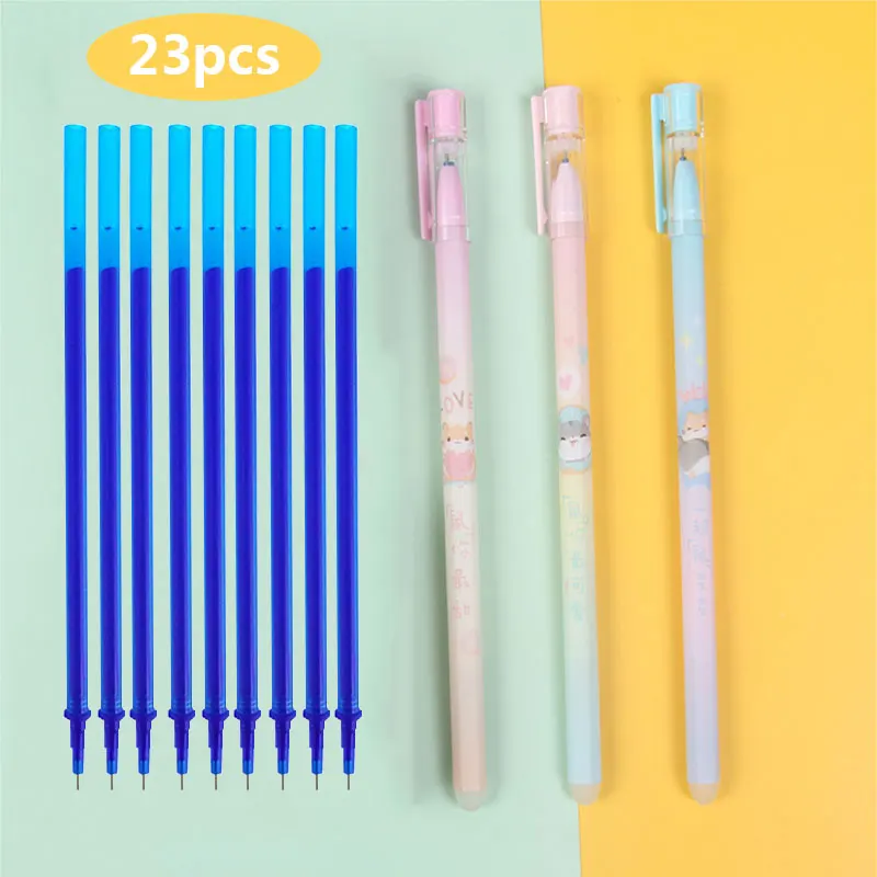 Набор стираемых ручек, 23 шт./лот, 0,5 мм, стираемая ручка синего/черного цвета, гелевая ручка для школы, офиса, канцелярские принадлежности для письма