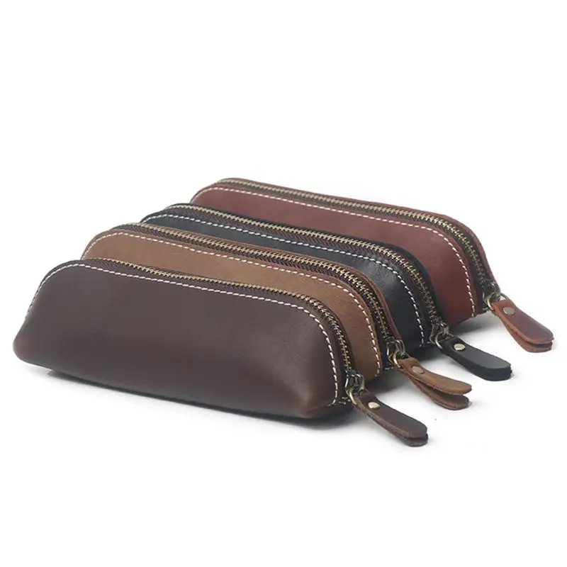 Ручная работа, натуральная кожа, пенал, винтажный Ретро стиль, Воловья кожа, молния, ручка, сумка для школы, очки, канцелярские принадлежност...