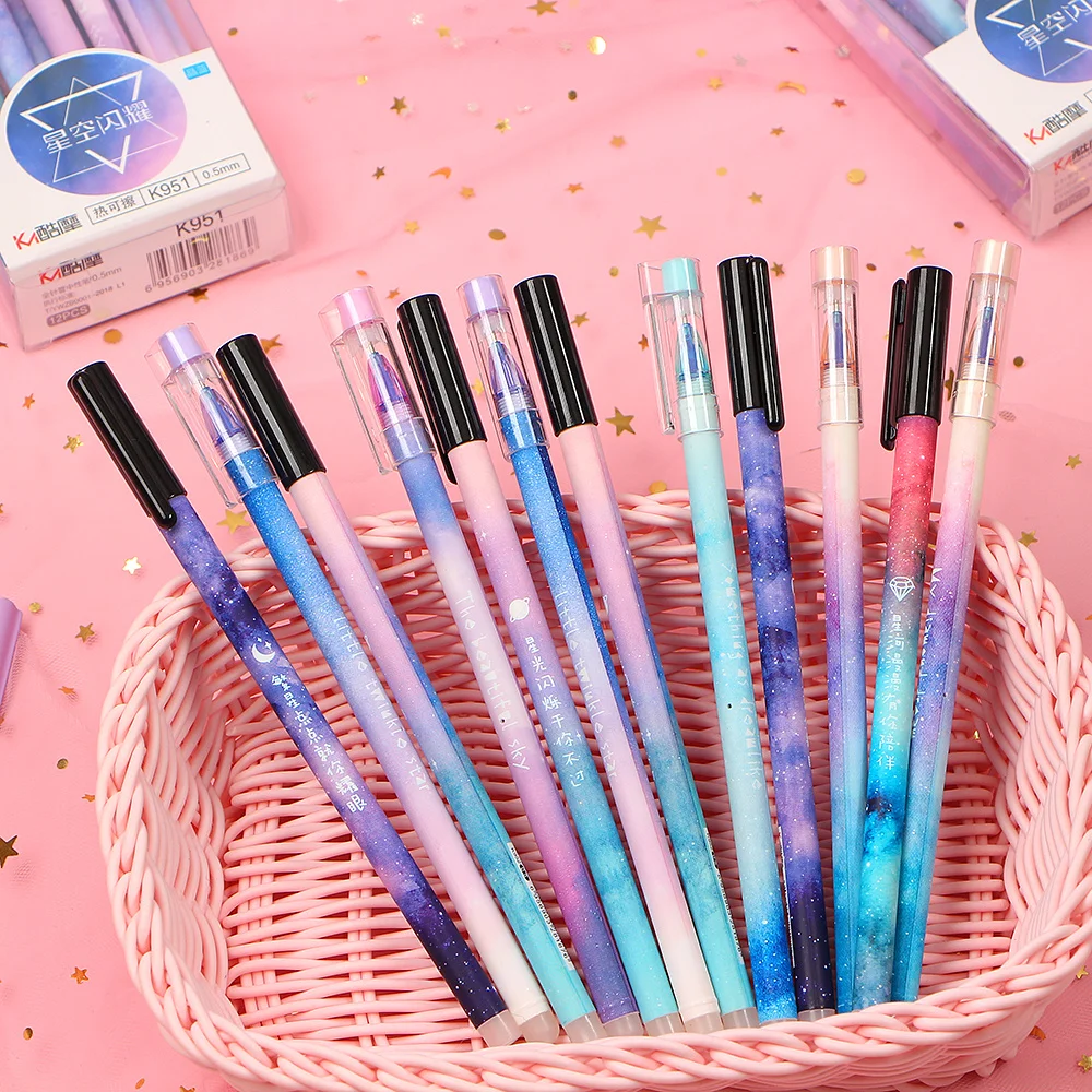 Стираемая ручка звездного неба, 4 шт./лот, 0,5 мм, синие и черные чернила, волшебная гелевая ручка для школы, офиса, канцелярские принадлежности для экзамена