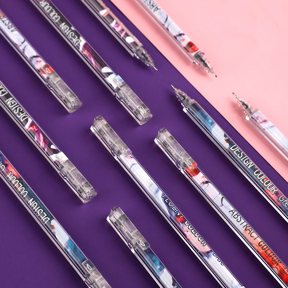 JIANUWU 4 шт./компл., 0,5 мм, абстрактная живопись, нейтральная ручка, милый гель для учебы, черные чернила для ручки, ручка kawaii, школьные принадлежности
