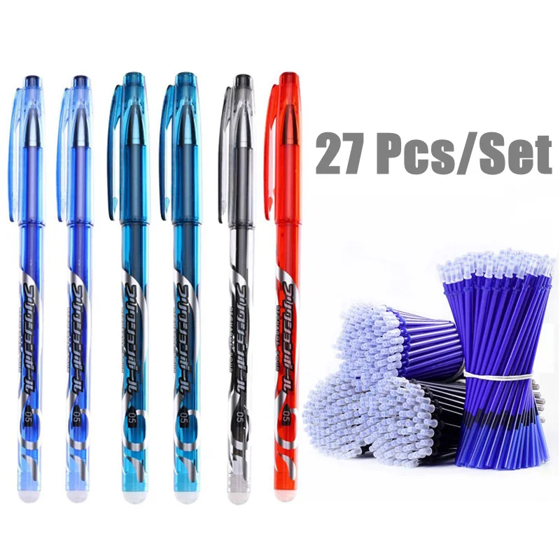 27 шт./лот стираемая ручка, стержень, моющаяся ручка, шариковая ручка 0,5 мм, синие, черные чернила для школьных ручек, стирает канцелярские при...