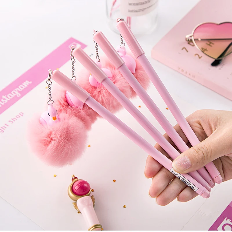 1 шт розовая гелевая ручка в виде фламинго красивые, из плюша Лебеди ручки для школы письма Девушки Подарки каваи нейтральные ручки канцеляр...