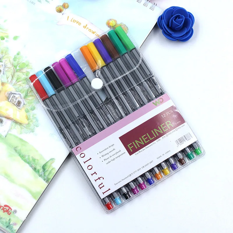 12 цветов на водной основе крюк линии маркер ручка художественная живопись Эскиз подписи Микрон ручка эскиз иглы трубки акварельные товары для рукоделия