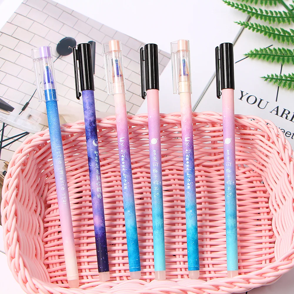 Стираемая ручка звездного неба, 4 шт./лот, 0,5 мм, синие и черные чернила, волшебная гелевая ручка для школы, офиса, канцелярские принадлежности для экзамена