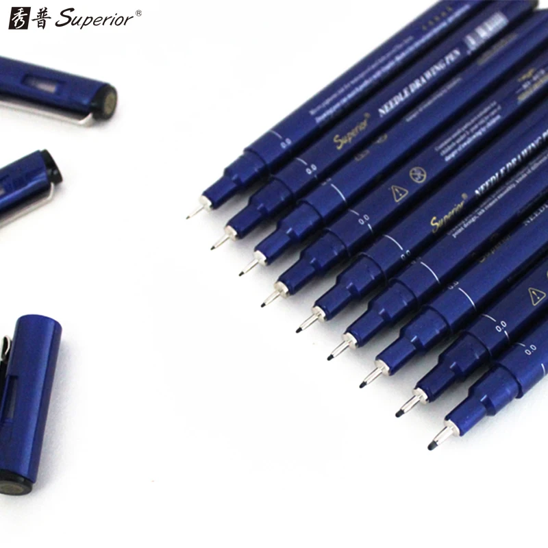 Превосходное Fineliner 9 шт./компл. эскизный искусственный маркер ручка различных Совет размеры черный пигмент лайнер на водной основе для рисов...