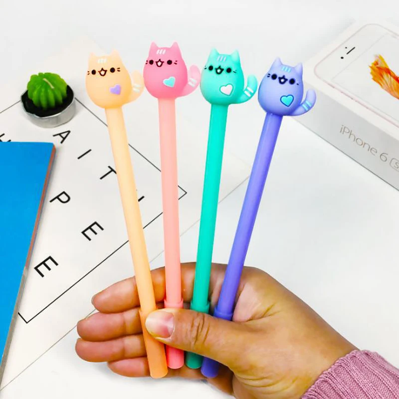 4 шт./компл. Kawaii 0,5 мм Карамельный цвет животного Кот сердце гель черные чернила для ручек перо для школы канцтоваров канцелярские подарок