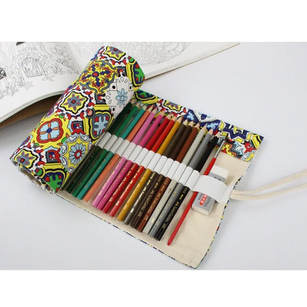 Модный узор холстяная рулон-карандаш Обёрточная бумага 36/48/72 Отверстия для путешествий для рисования чехол для карандашей для художника