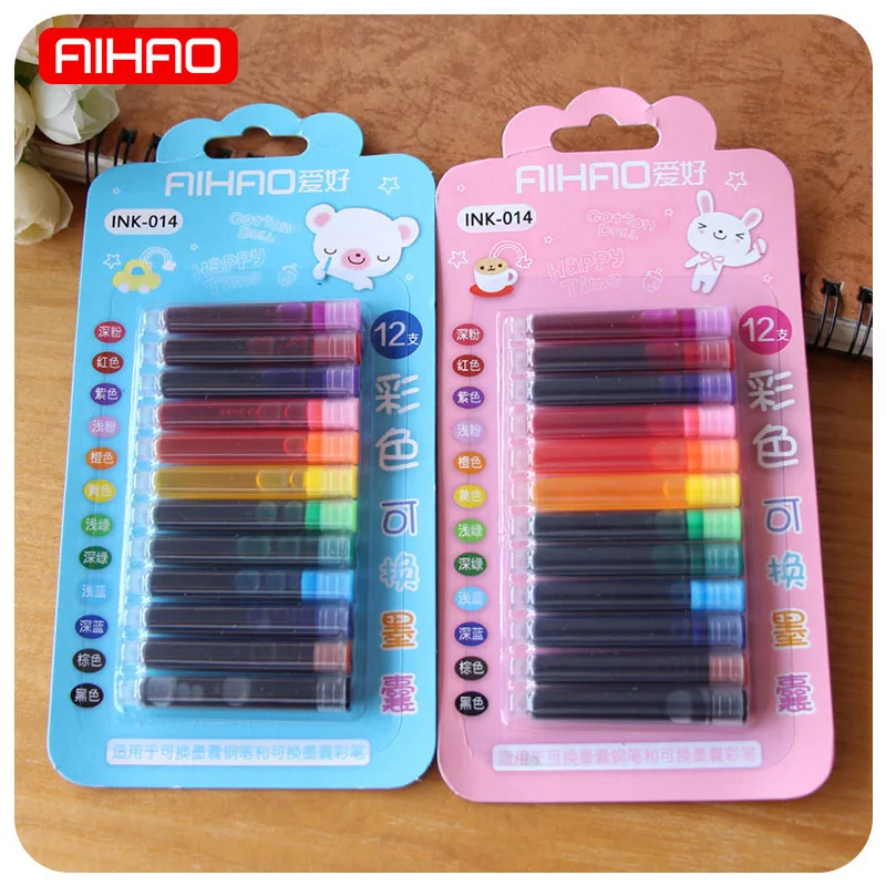 AIHAO 12 цветов/лот одноразовые чернила Sac картридж заправки для фонтана каллиграфия ручка Офис Школьные принадлежности творческие канцелярск...