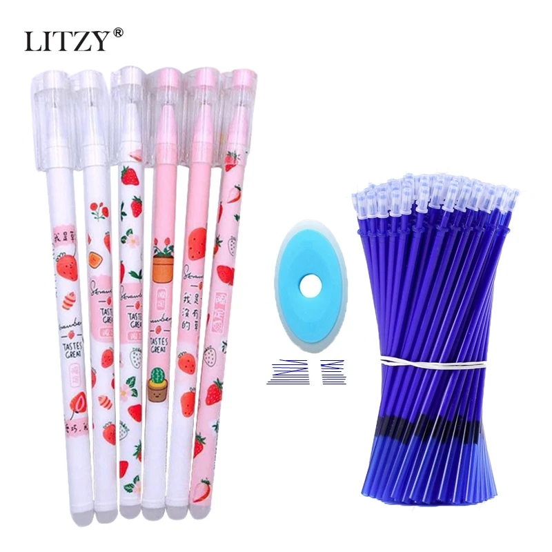 27 Шт. Клубника Стираемая Гелевая Ручка Пополнения Набор Синие Чернила 0.5 мм Моющиеся Ручка Стираемые Ручки для Школьного Офиса Написание Канцтовары