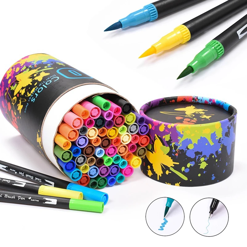60 Цвет двойной Совет ручки-щетки тонкой вкладыши маркер акварельные ручки кисть ручки для рисования эскиз искусство маркеры круглые, в пода...