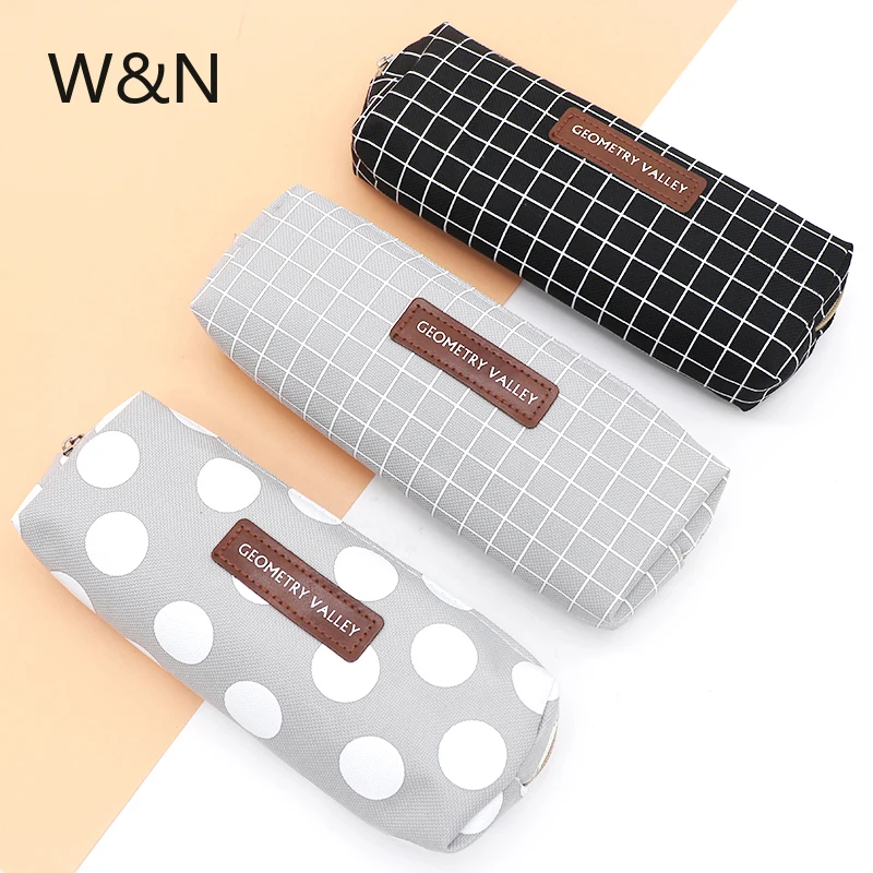 Черный пенал простой клетчатый Одноцветный школьный пенал в горошек для девочек и мальчиков, милый рулон карандашей, сумка, коробка, канцел...