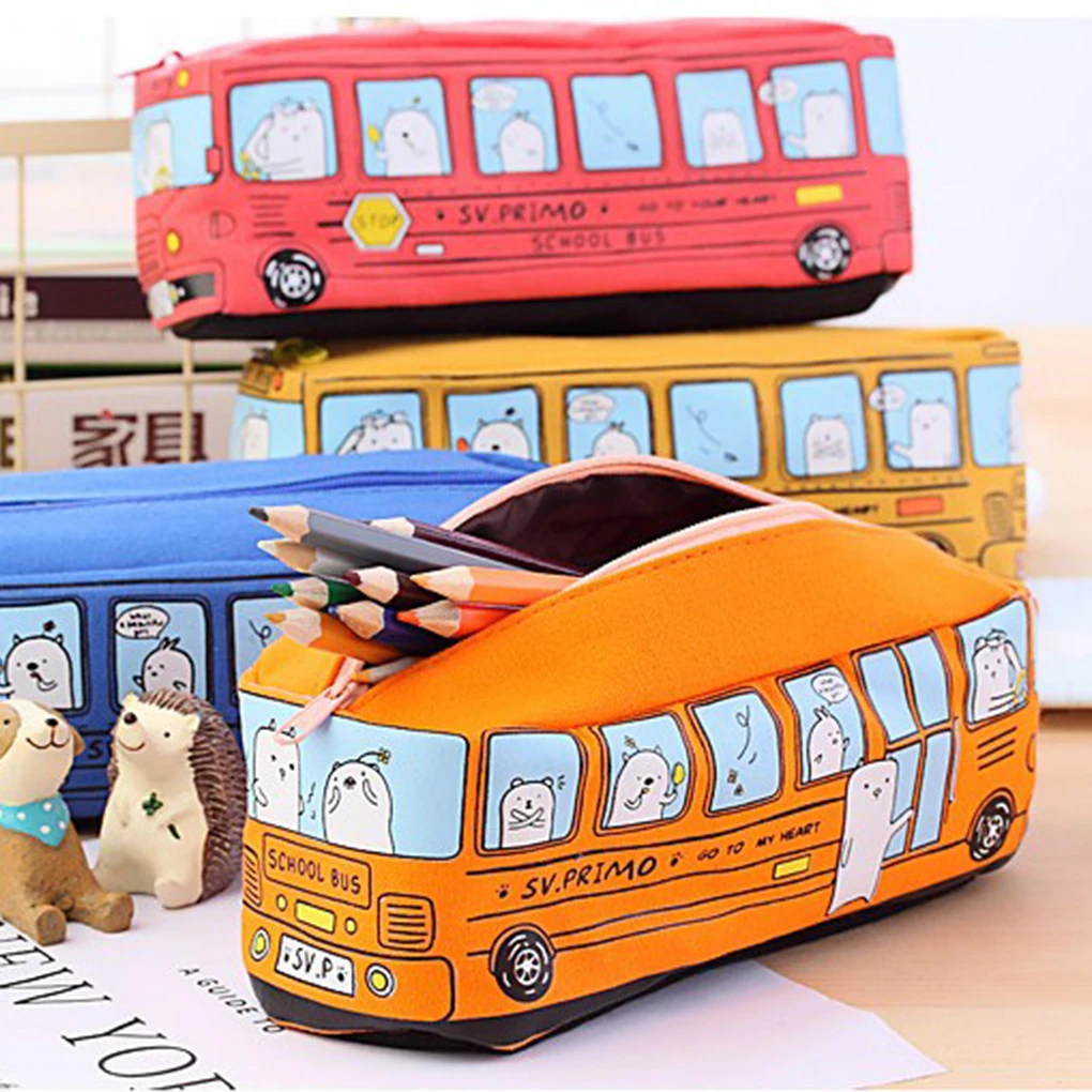 Kawaii Penccute школьный автобус пенал, большой ёмкость холст автомобильный Карандаш сумка, поставки сумка на молнии тканевый мешочек для каранда...