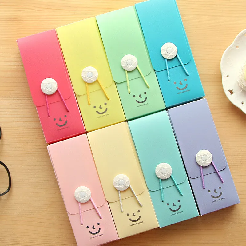 Милой улыбкой пенал Карамельный цвет Пластик пенал с застежкой Kawaii ПВХ коробке дешевые канцелярские подарок школы офис мини Портативный