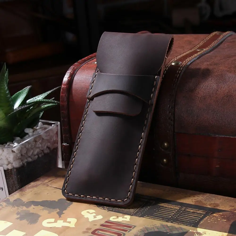 Кожаные чехлы для ручек из воловьей кожи, ручная работа, натуральная Сумка-карандаш, рукав, офисные школьные ученические канцелярские прина...