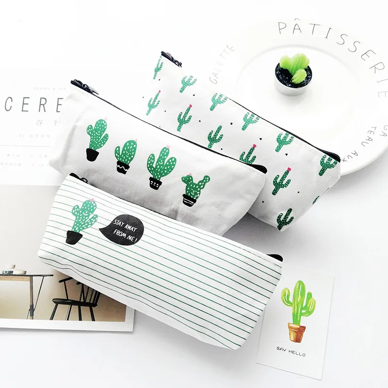 Зеленый Кактус Ручка Карандаш сумка чехол холст материал горшки растения хранения Органайзер для канцелярских принадлежностей Офис Школа Студент A6317