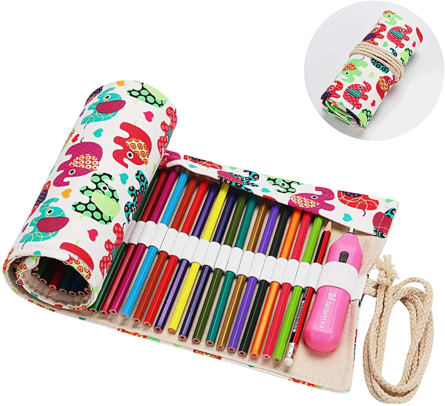 Ручная работа, холст, мультяшный милый стиль, цветной карандаш, рулон, держатель для ручки, чехол, многоцелевой, кот, слон, олень, сова, 12-72 сло...
