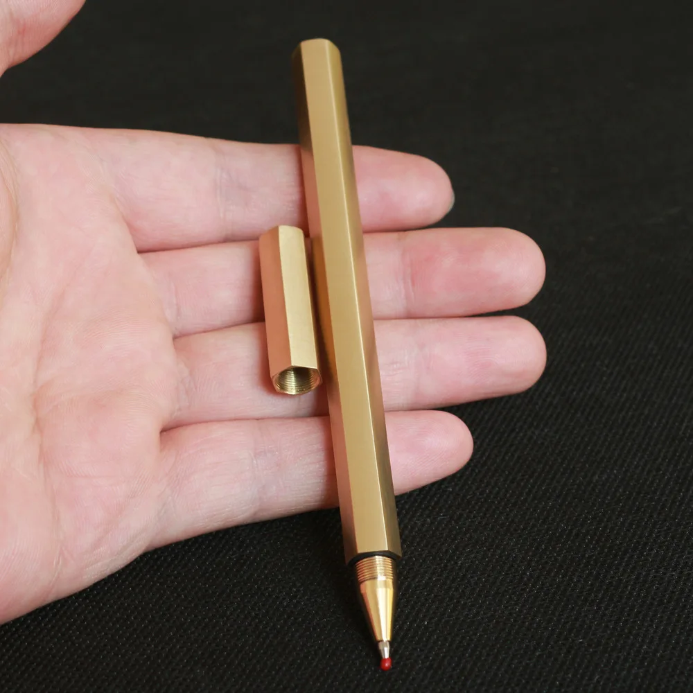 Шестиугольная латунная гелевая ручка ручной работы Чистая шестиугольная латунная ручка металлическая гелевая ручка бамбуковая медная ручка креативный подарок школьные офисные канцелярские принадлежности