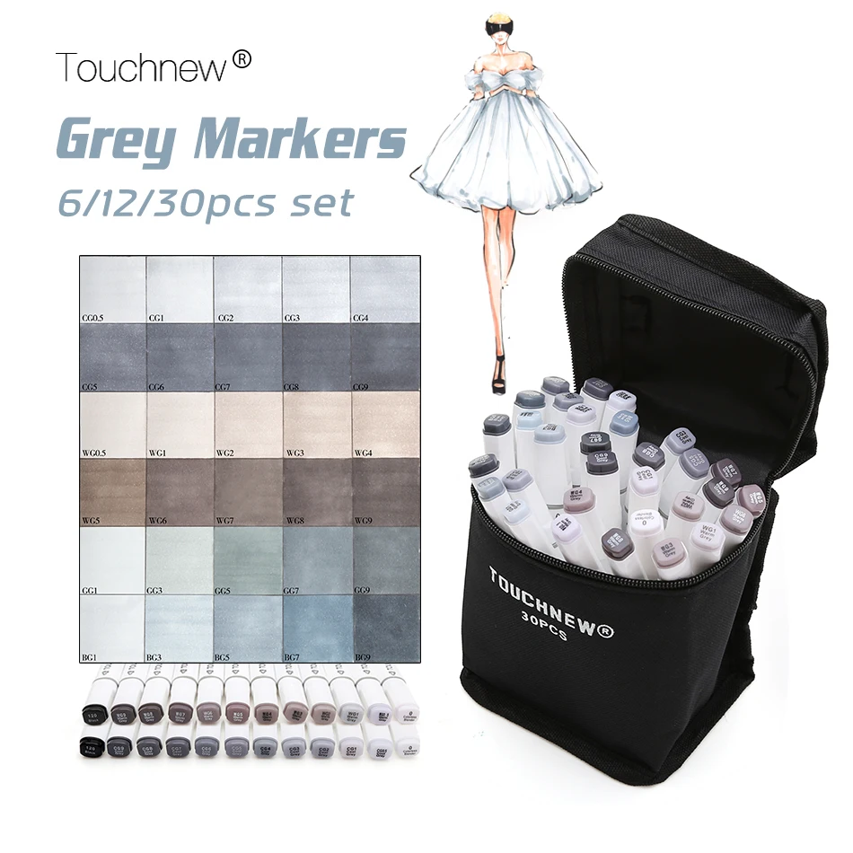 Touchnew 6/12/30 Цвета оттенки серого Искусство Маркер Двусторонняя эскиз маркеры спиртовой основе чернил нейтральных серых тонов товары для руко...