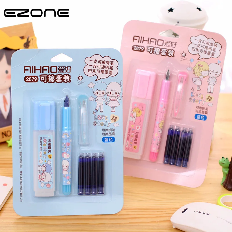 EZONE 1 комплект стираемая перьевая ручка креативная детская практика каллиграфии ручка розовая/синяя ручка удобная канцелярская в Корейском...