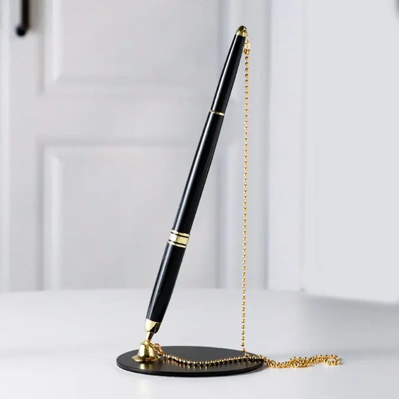Классическая металлическая шариковая ручка, безопасная цепочка, прикрепленная Базовая подставка, Настольная офисная стойка, ручки для под...