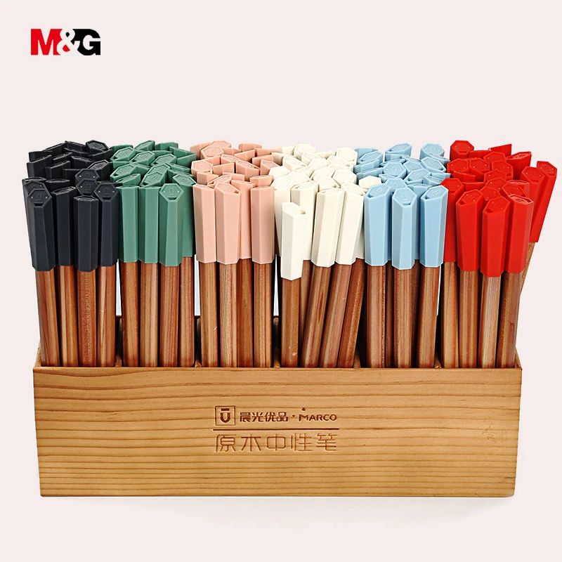 M & G 3 цвета черные, голубые чернила высокого качества деревянные гелевые чернила ручка для школы Студенческие письма милые офисные канцеляр...