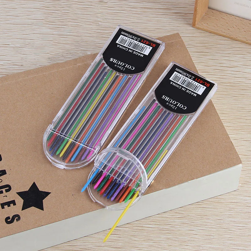 12 шт. 2,0 мм Новинка карандаши для рисования заправки Kawaii красочные механические стержни для карандаша для детей Подарки школьные принадлежности канцелярские принадлежности